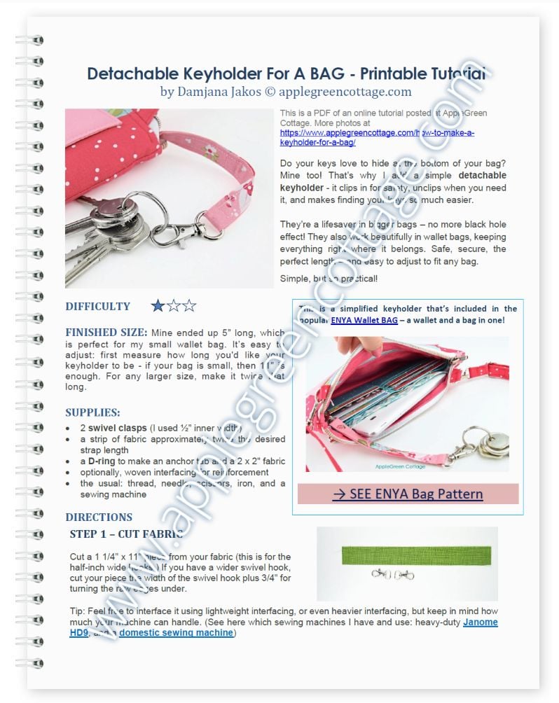 Detachable Keyholder For A BAG - Printable Tutorial PDF