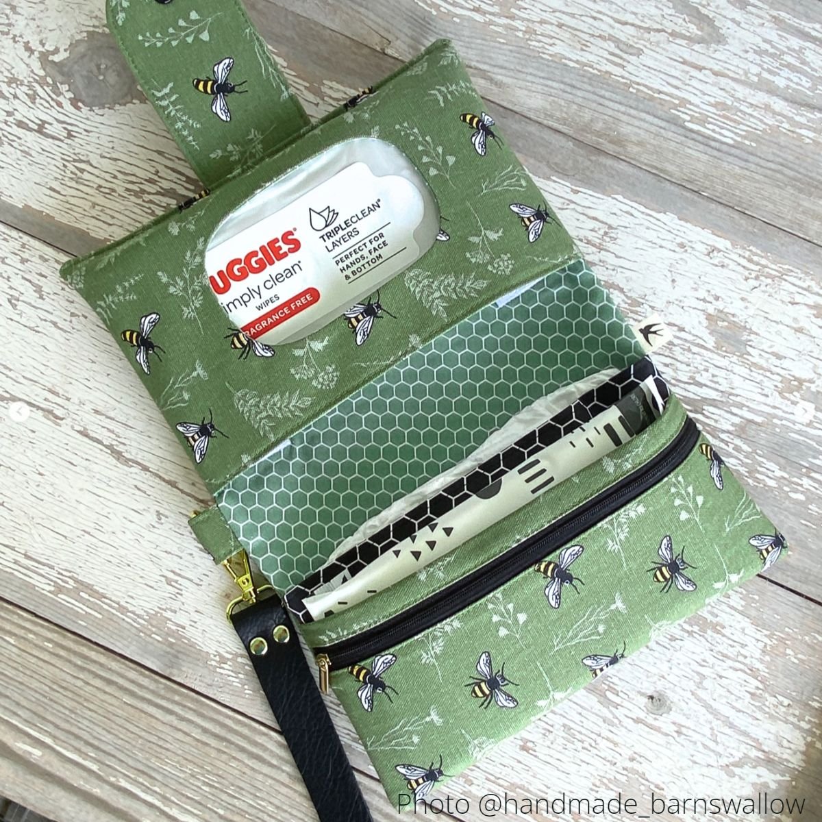 A stylish solution to carry baby diapers and wipes wherever you go. The perfect handmade gift that every new mom would love to have, and an excellent baby shower present!